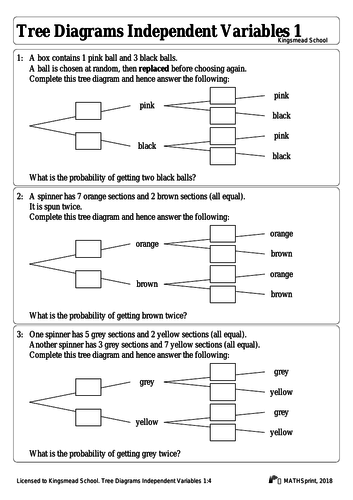 Probability Worksheets | Probability Tree Questions & Answers Using worksheets either in the classroom or at home is an excellent way to prepare children for probability questions in their exams and in their future careers. Quality probability resources that break down this important information into manageable chunks will aid students' understanding of the topic, increasing their chances of success.