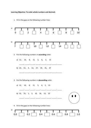Ordering numbers worksheets and online exercises Ordering numbers worksheets and online activities. Free interactive exercises to practice online or download as pdf to print. Advanced search. x. ... Math worksheet Grade/level: pre-school by Muzna138: Arranging 1 - 10 Grade/level: Kindergarten by Teacher Angela: Ordering of numbers Grade/level: 3 Ordering Numbers Worksheets | K5 Learning Ordering numbers worksheets. In these place value worksheets, students practice ordering large numbers from smallest to largest. Numbers up to 10,000 and 100,000 are included. Free math worksheets; no login required. Ordering Decimals Worksheets - Math Worksheets 4 Kids A number of pdf worksheets are stacked with a variety of exercises include ordering decimals in place value boxes, using the number line, and using the greater than and less than symbols. Riddle worksheets require you to order decimals to decode the riddles that are sure to tickle your funny bone! Ordering Numbers Worksheets, Missing Numbers, What comes ... - MegaWorkbook Ordering Numbers Worksheets - 1 to 10 Below worksheets teach the concept of ordering numbers to kindergarten kids by using various different types of worksheets like fill in the missing numbers, find what comes before and after a number, arranging numbers in correct number order, find and circle the incorrect number in the sequence.