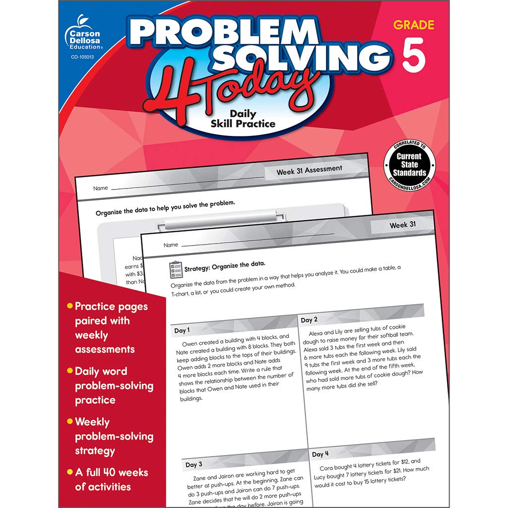 Carson Dellosa – Problem Solving 4 Today: Daily Skill Practice, Math Problem-Solving Activities for 5th Grade, 96 Pages, Paperback, Ages 10–11 with ...